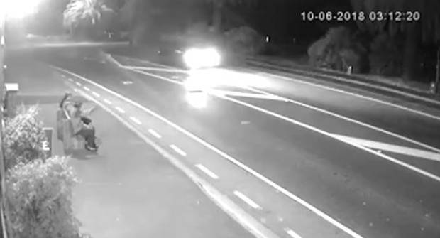 But instead of panicking, the thieves used some quick thinking to avoid suspicion by quickly placing the seat on the footpath and sitting on it as the car drives by.