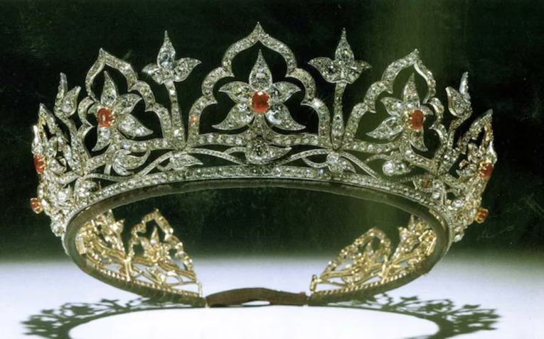 The tiara was created by Garrard in 1853, and Albert’s design was inspired by the arch and lotus motifs in jewels presented by the East India Company at the Great Exhibition in 1851.