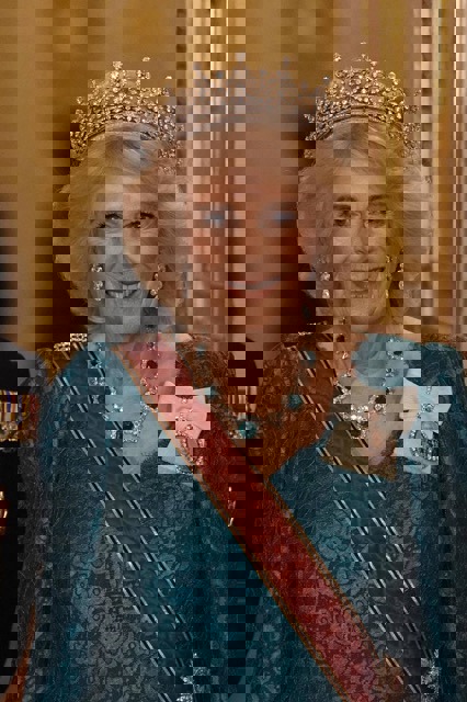 Queen Camilla’s tiara was also sensitively chosen to pay homage to the late Queen. Also designed by Garrard, the Girls of Great Britain and Ireland tiara was originally given to Queen Mary, as a wedding gift in 1893. Mary, in turn, gave it to her granddaughter, the then-Princess Elizabeth, when she wed Prince Philip in 1947.