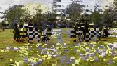Today, dressed in their black tie finery, the NZSO took to the local farm to debut the composition to the feathered flock in sunny Hawke’s Bay - how clucking good to be a chook!
